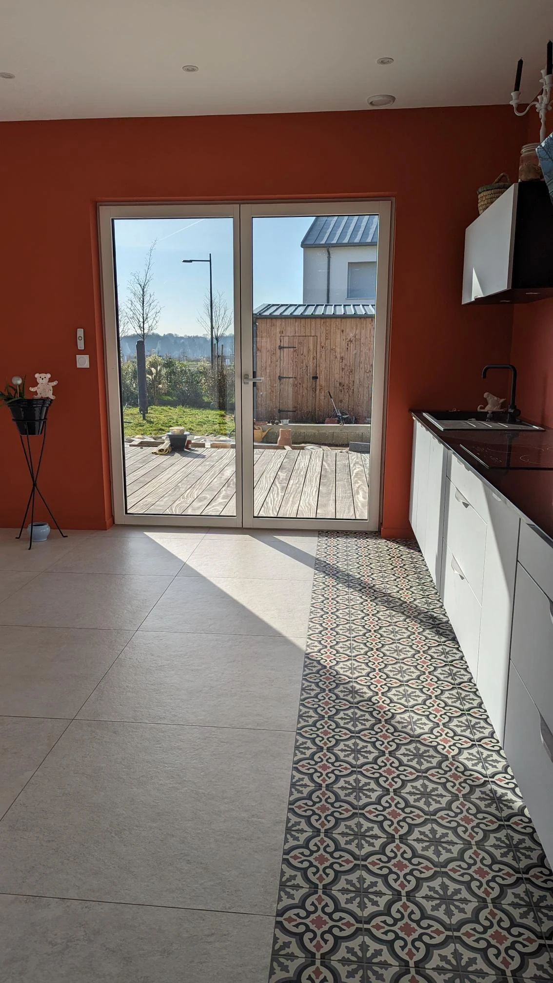 Une terrasse bois sera réalisée dans la continuité du stationnement pour l’accès