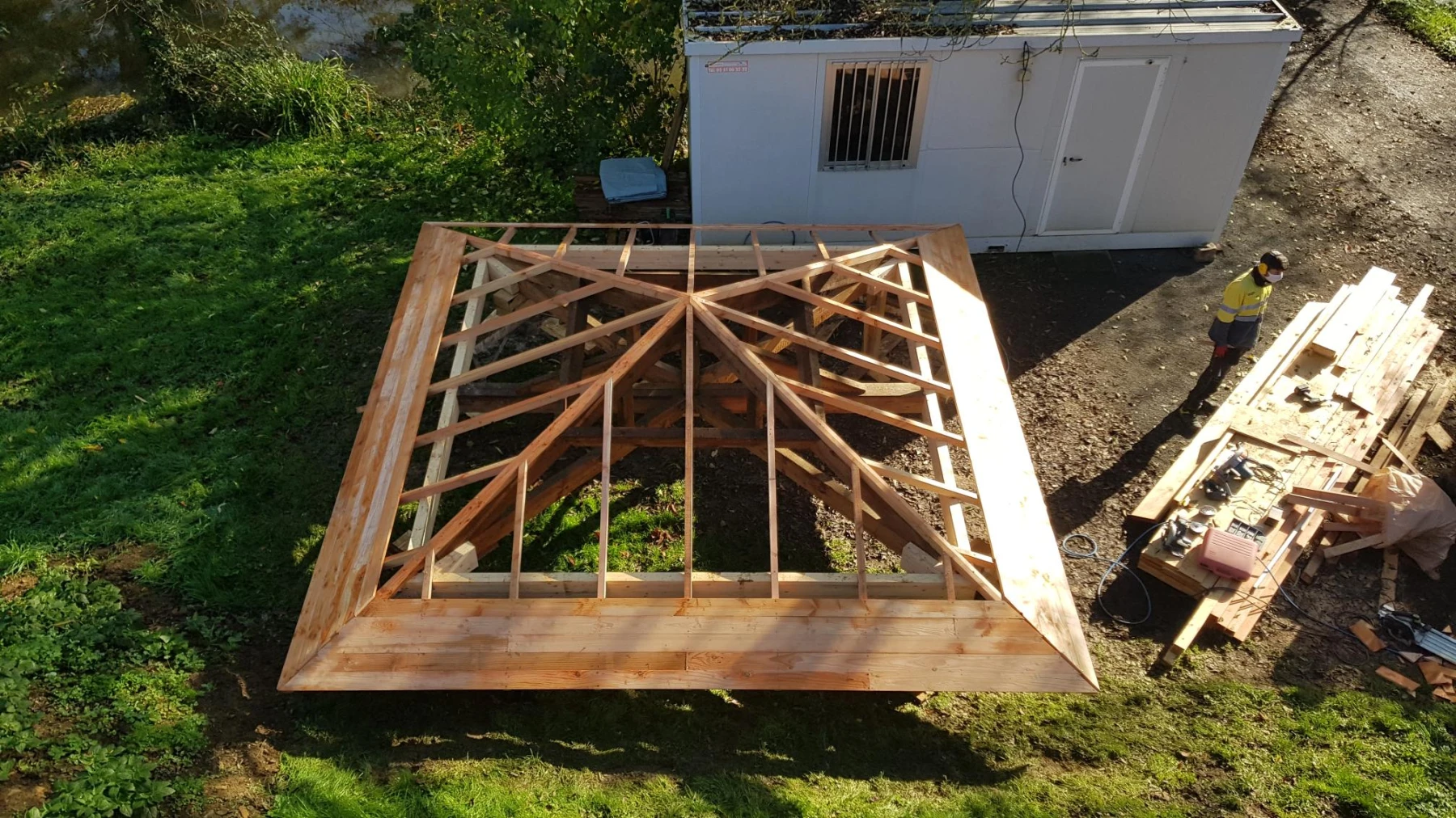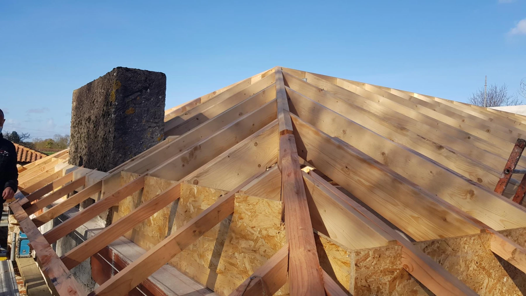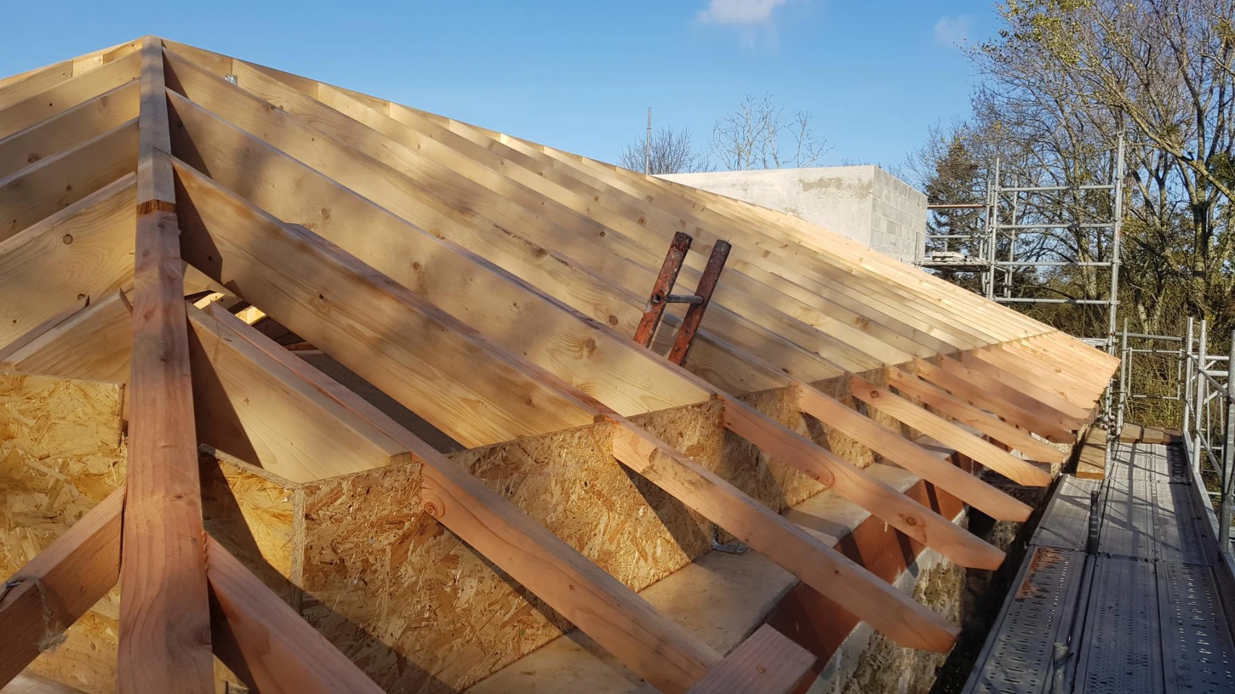- Rampants : Charpente traditionnelle en chêne, fibre de bois Steico insufflée 230 mm +80 mm