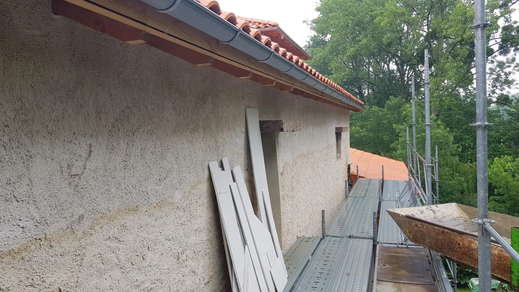 Piquage des enduits ciment, démolition des dalles béton et extensions parpaing